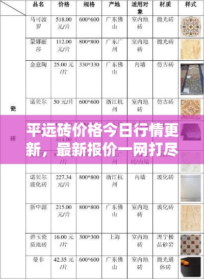 随着建筑行业的蓬勃发展,砖材作为重要的建筑材料之一,其价格行情一直备受关注,本文将为您详细介绍今日平远砖价格最新行情,带您了解市场动态。